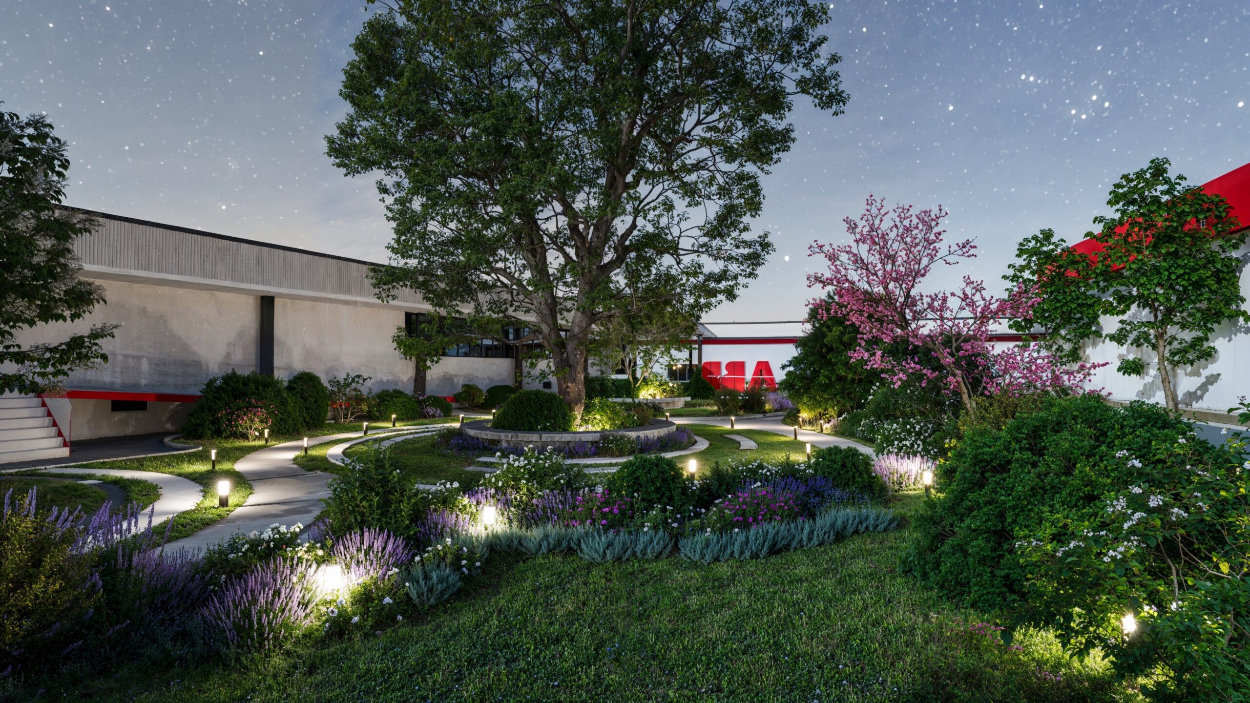 La scena è stata modellata in 3ds Max e resa con Corona Renderer, puntando su un’illuminazione naturale e bilanciata, resa possibile grazie a un’attenta gestione dell’ambiente HDRI e dei materiali PBR. La vegetazione è stata selezionata con cura per rappresentare specie mediterranee tipiche e stagionali, garantendo un risultato credibile e coerente con il progetto reale.